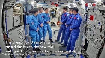 Handover of station between Shezhou-18 and Shenzhou-19 crew.